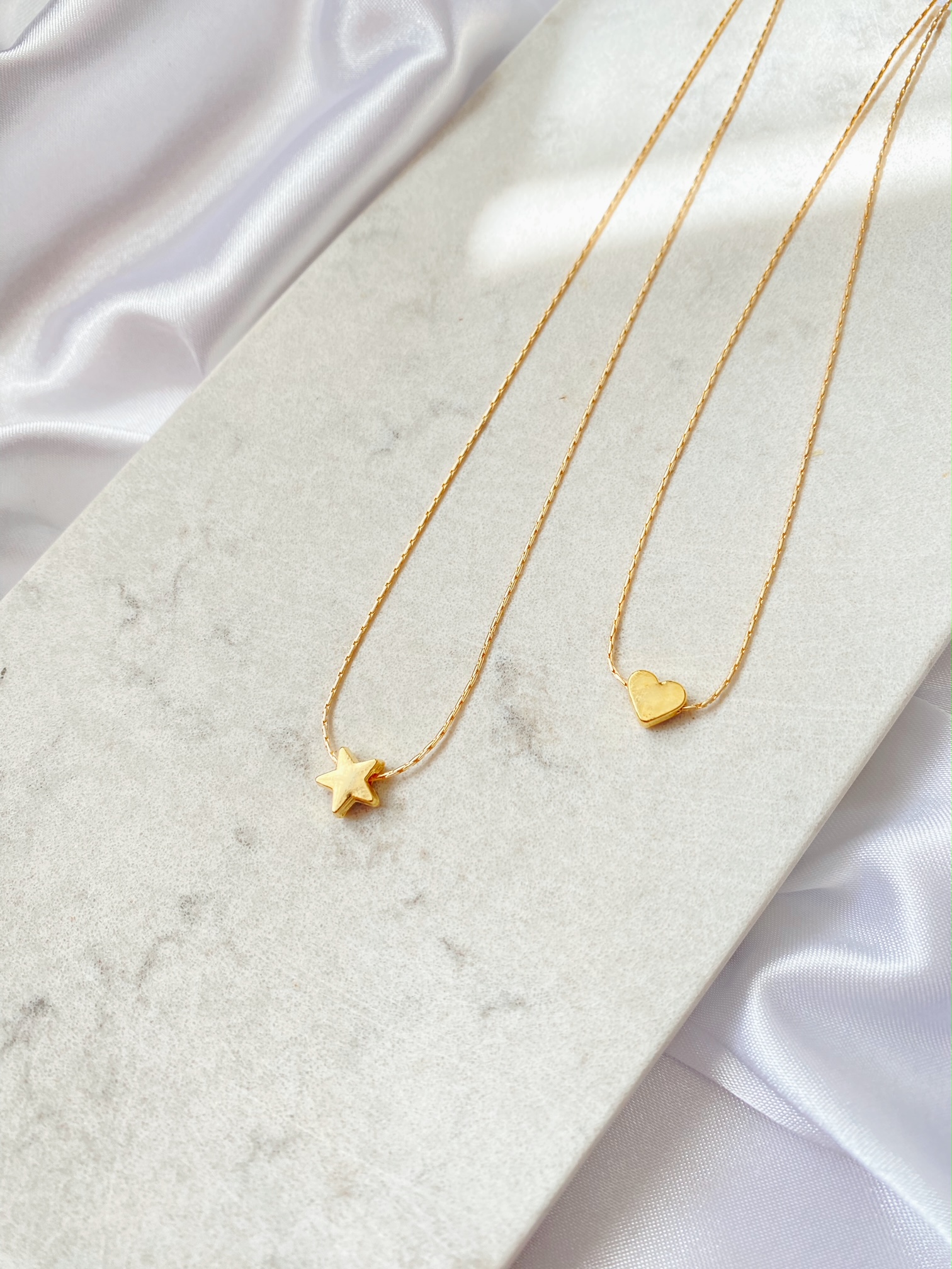 Altın Kaplama Minimal Yıldız ve Kalp Kolye Seti