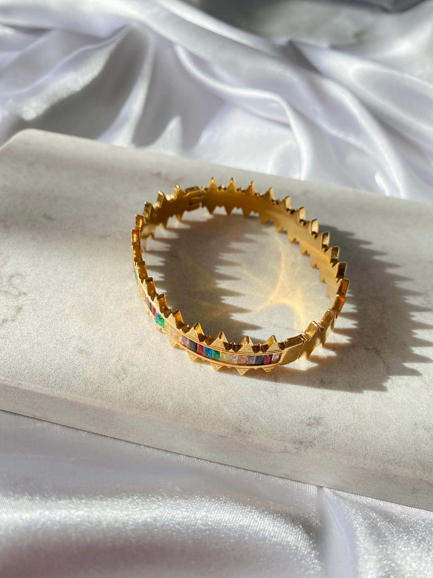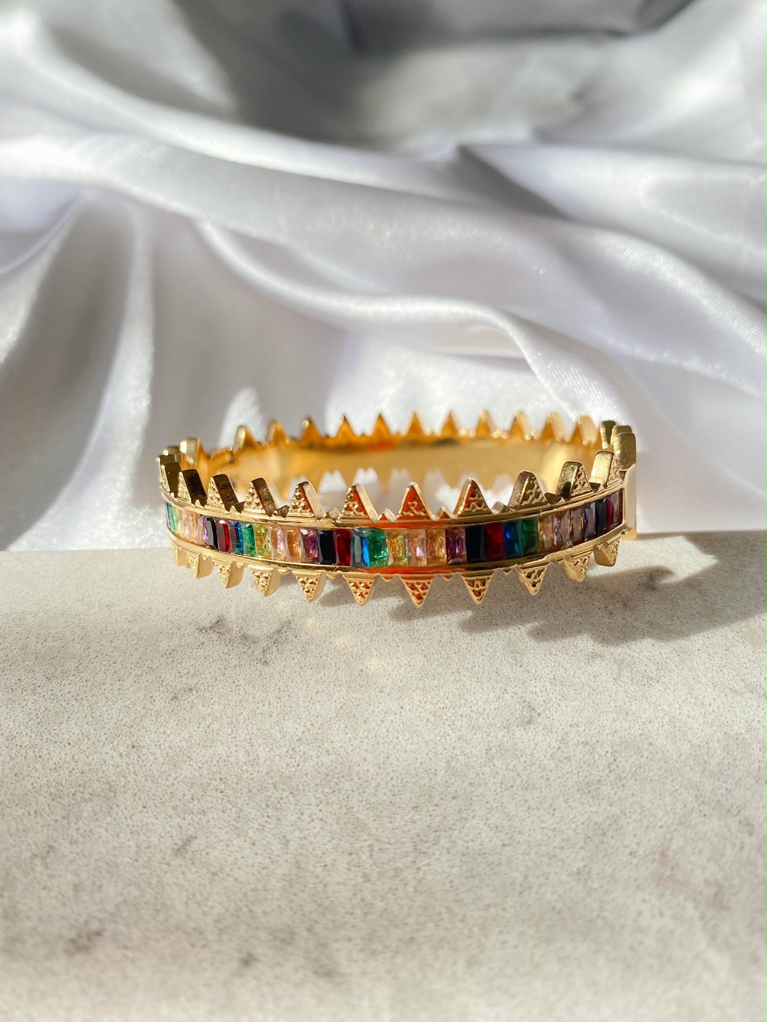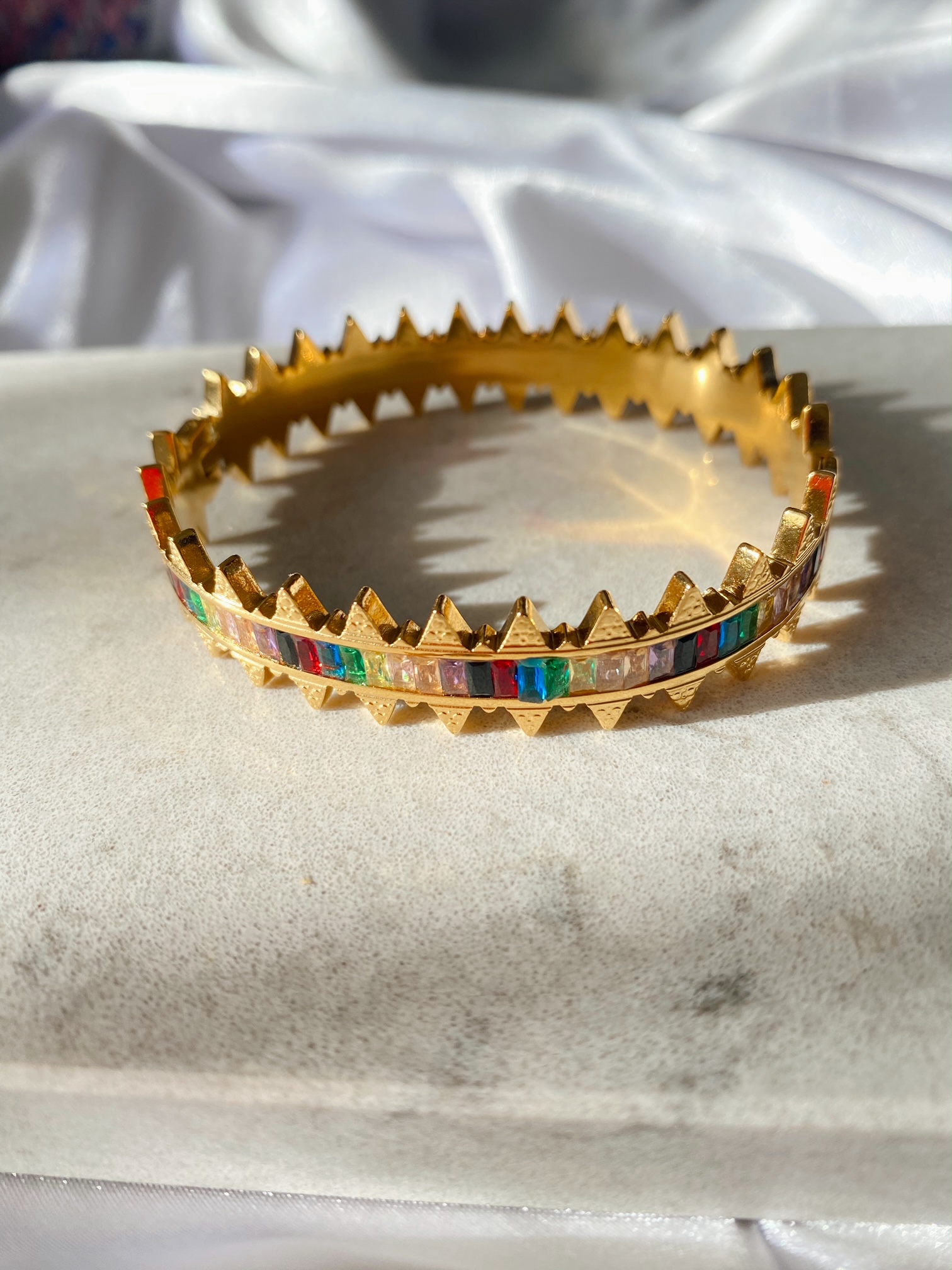 Çelik Renkli Zirkon Taşlı Kelepçe Bilezik Gold