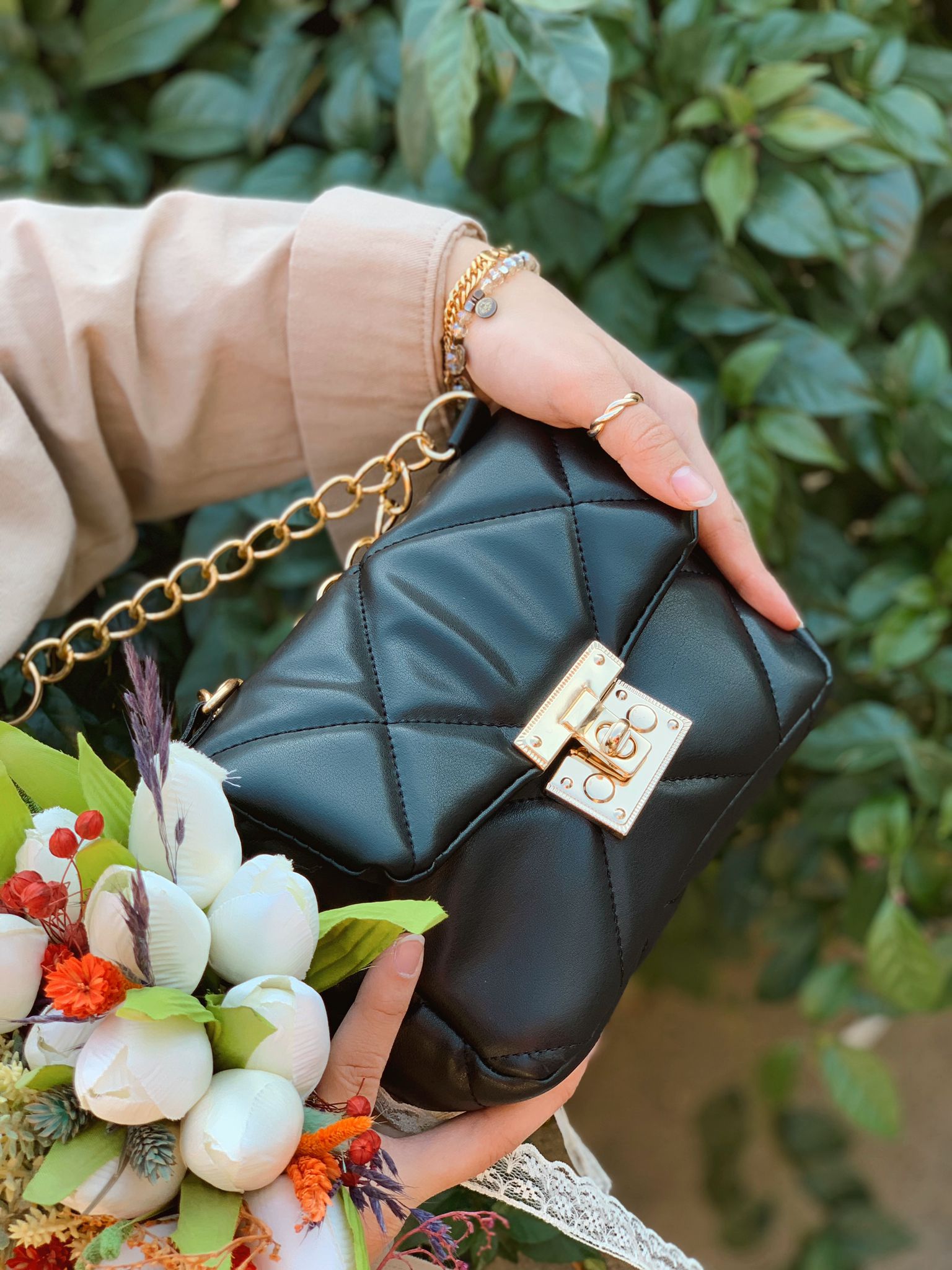 Siyah Zincir Detaylı Kapitone Çapraz Askılı Çanta